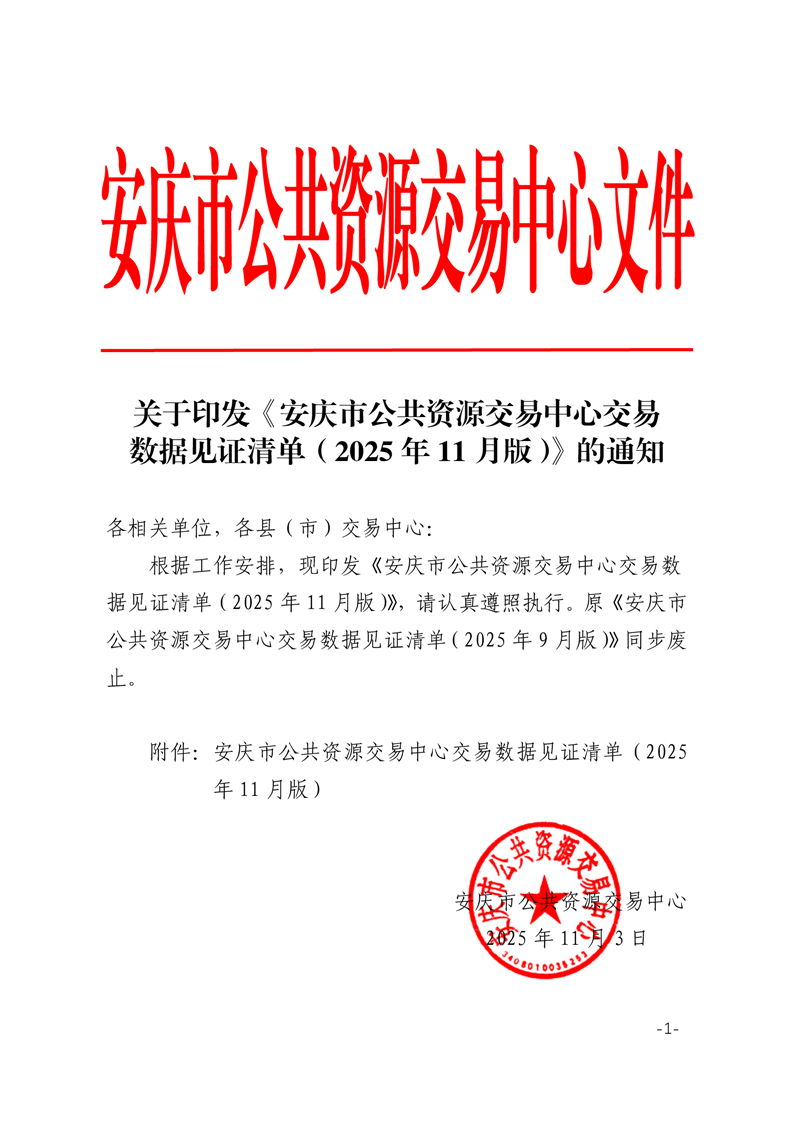 關于印發(fā)《安慶市公共資源交易中心交易數(shù)據見證清單(2025年11月版)》的通知