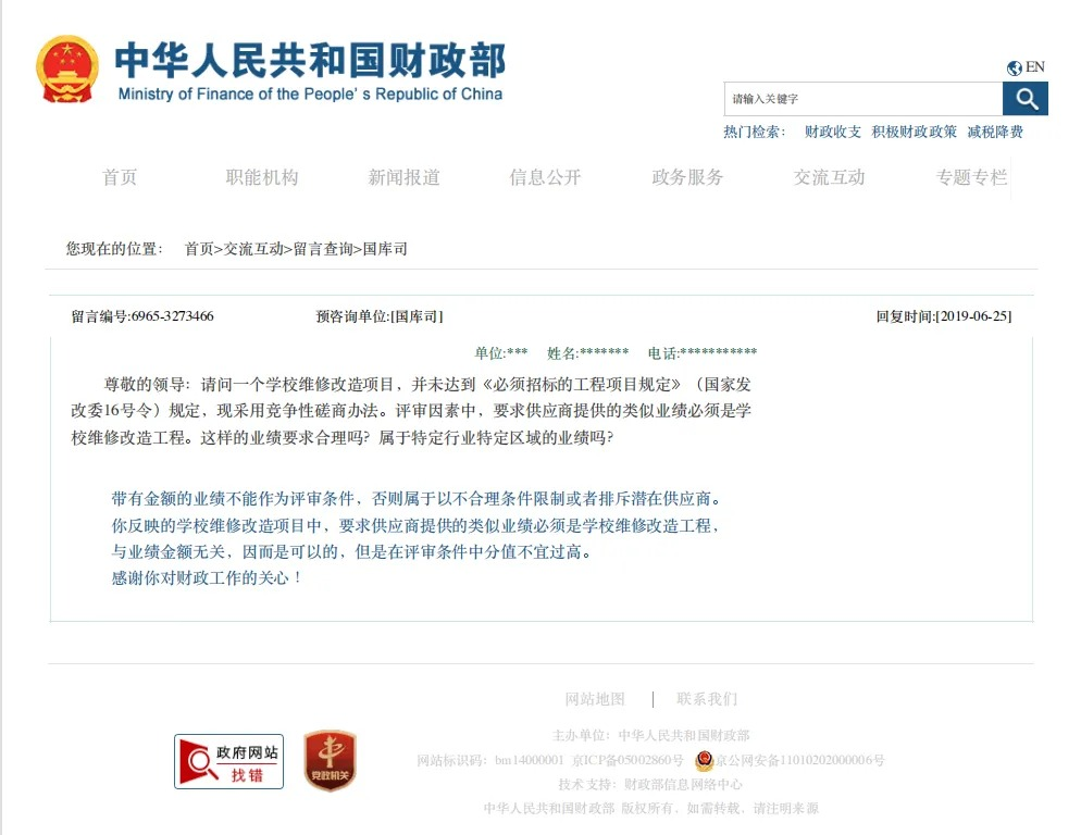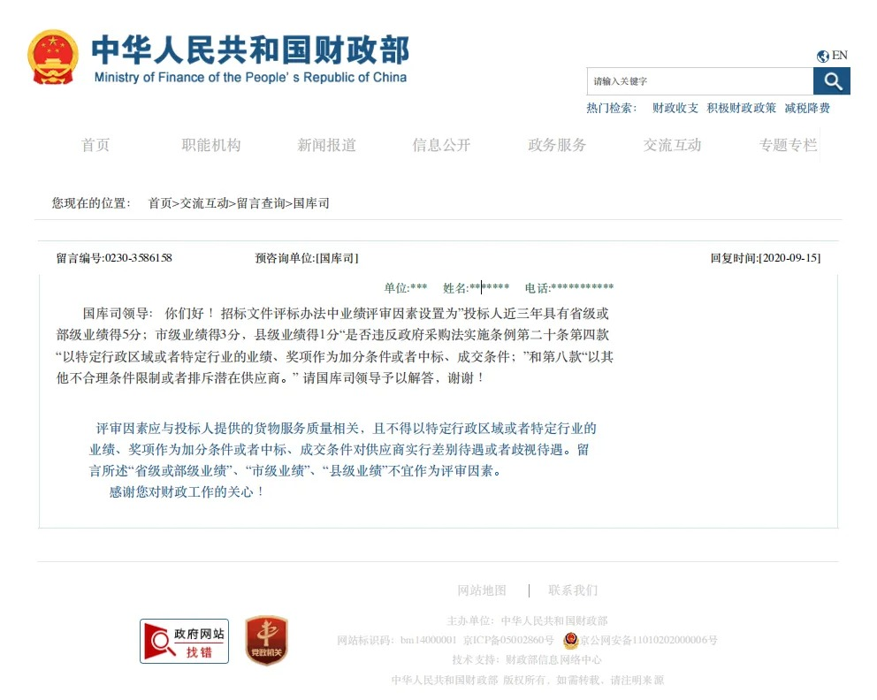 財(cái)政部回復(fù):“省級(jí)或部級(jí)業(yè)績”、“市級(jí)業(yè)績”、“縣級(jí)業(yè)績”不宜作為評(píng)審因素